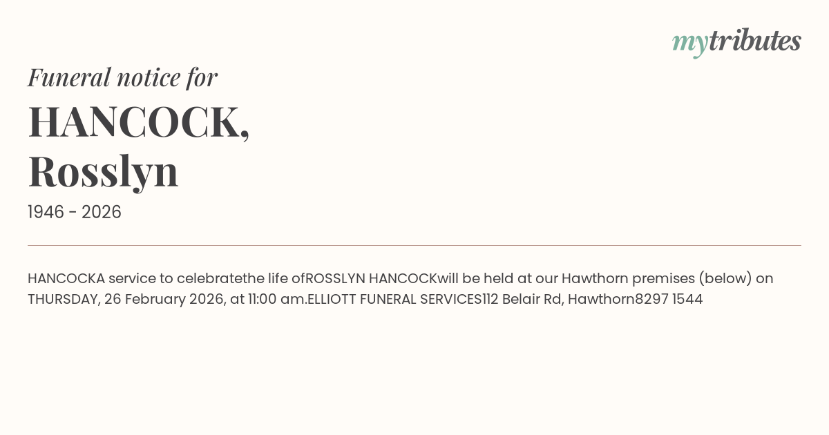 Funeral by : Elliott Bros Funerals (inc Bowen Family Funerals)