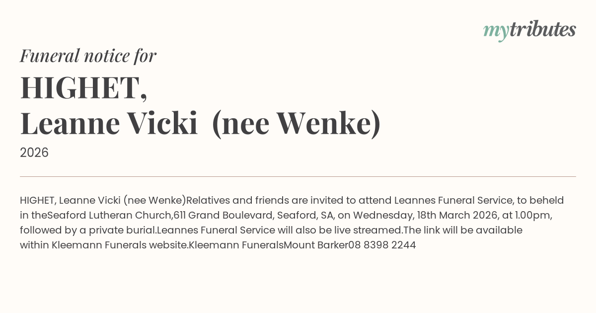17°CHIGHET, Leanne Vicki (nee Wenke)