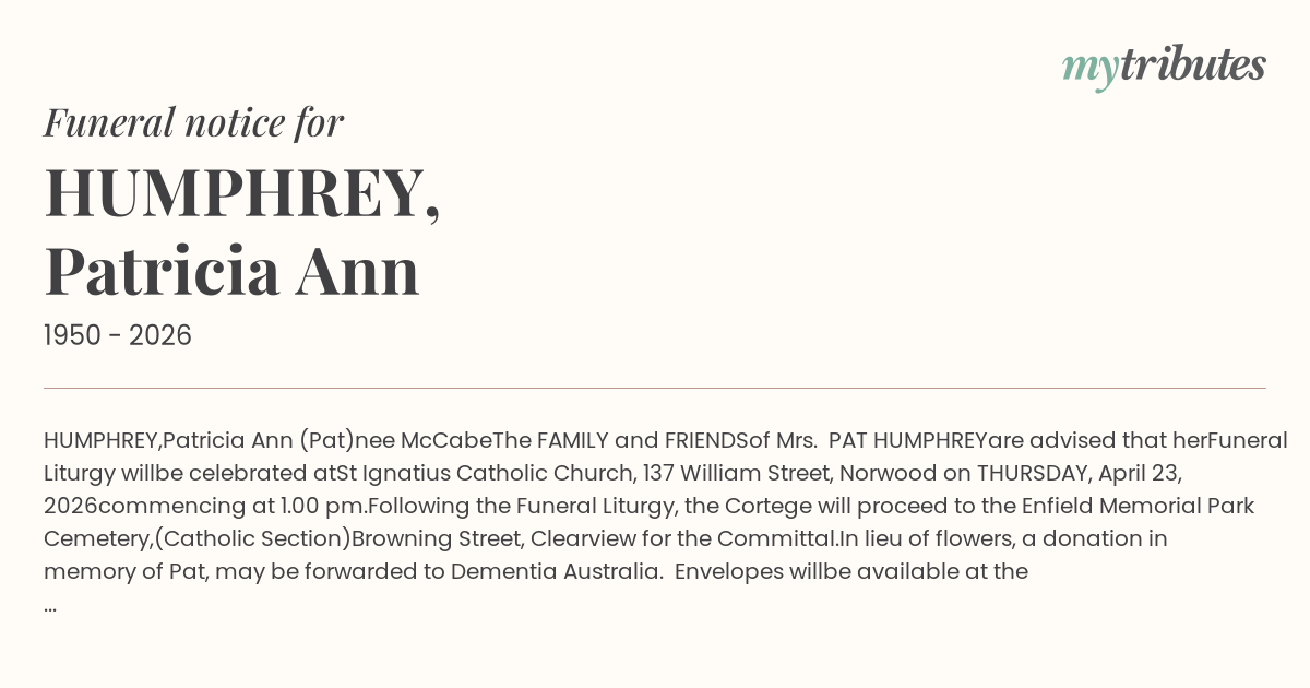 the Cortege will proceed to the Enfield Memorial Park Cemetery,