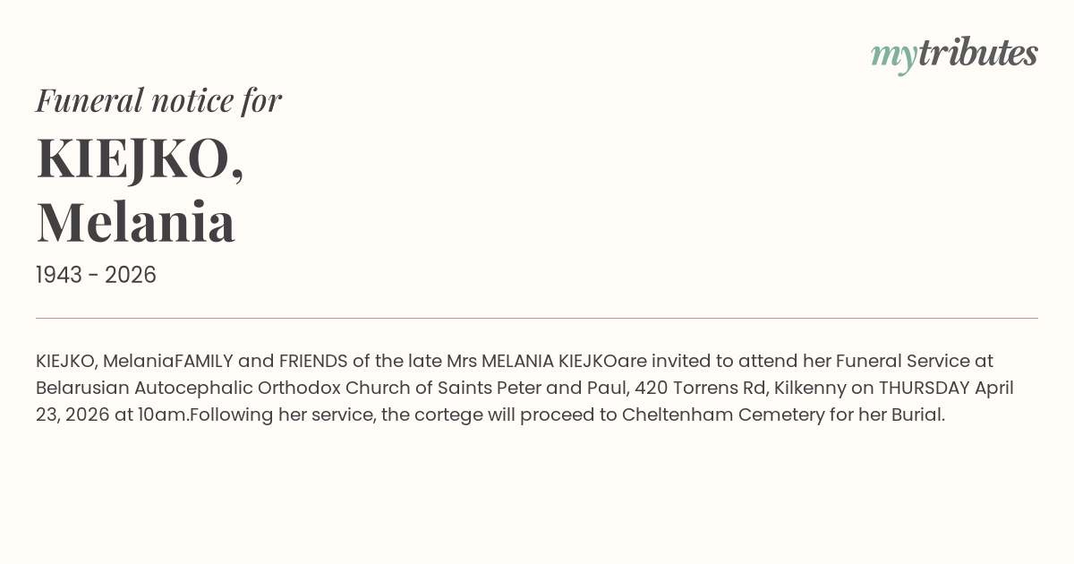 FAMILY and FRIENDS of the late Mrs MELANIA KIEJKO