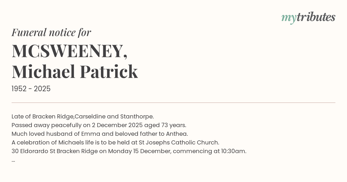 Passed away peacefully on 2 December 2025 aged 73 years.