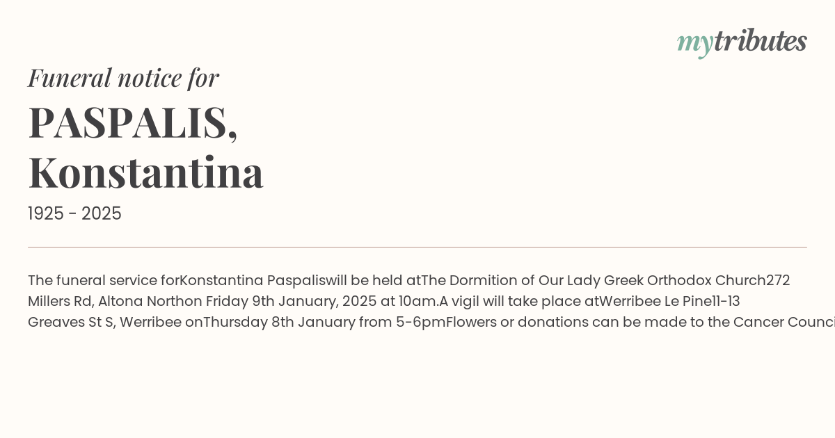 Flowers or donations can be made to the Cancer Council