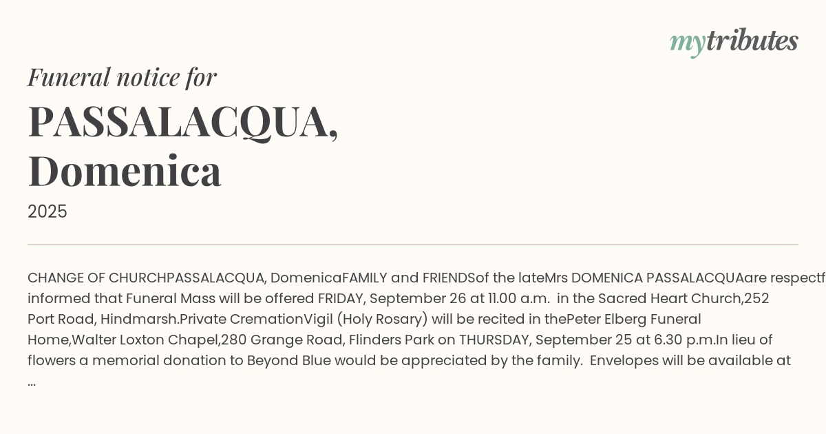 Website: http://www.peterelbergfunerals.com.au