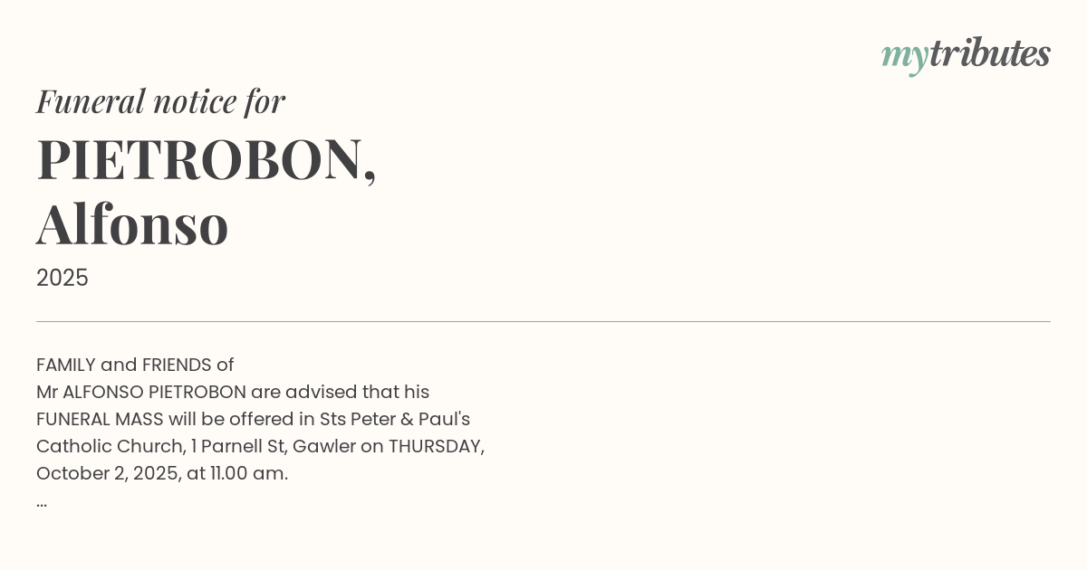 Mr ALFONSO PIETROBON are advised that his