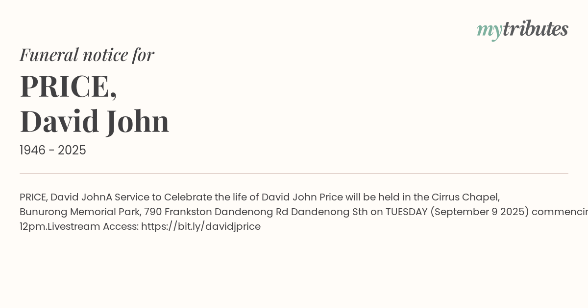 Livestream Access: https://bit.ly/davidjprice