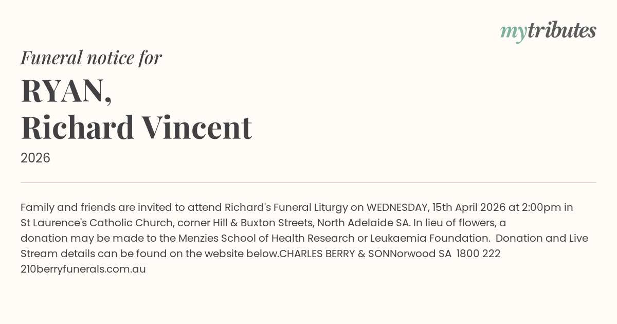Funeral Liturgy on WEDNESDAY, 15th April 2026 at 2:00pm