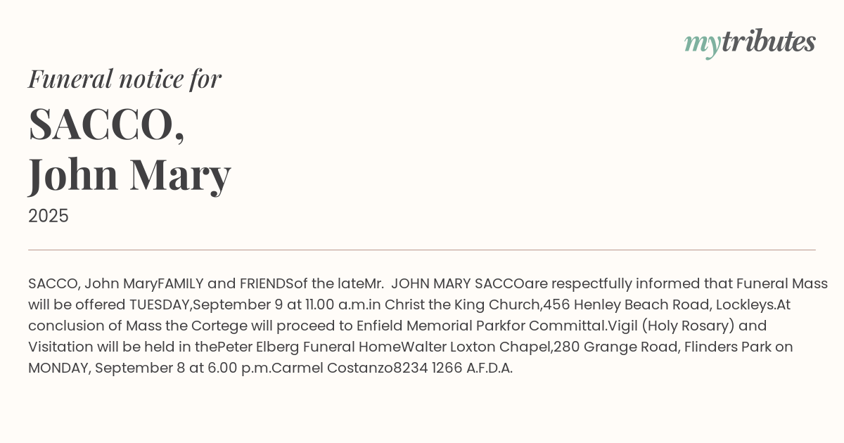 are respectfully informed that Funeral Mass