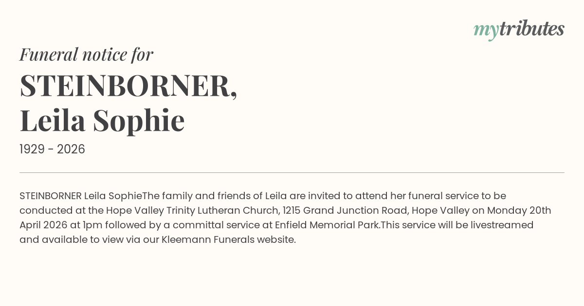 The family and friends of Leila are invited to attend her funeral service to be conducted at the