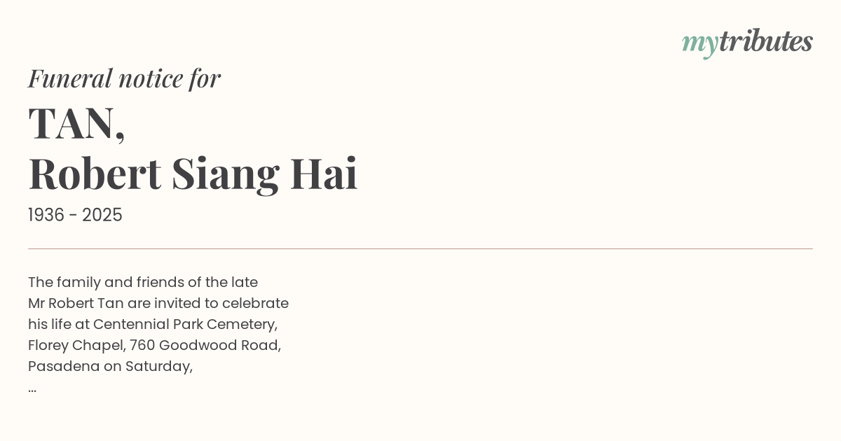 Reference: ‘In Memory of Robert Tan’